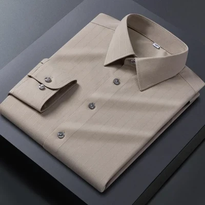 Mens Strips Shirts Formal Business Long Sleeves Bamboo Casual Shirts Tops