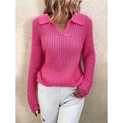 Women's Autumn Winter V-neck Long Sleeve Sweater Ladies Fashion Casual Slim Fit Knitted Sweater Tops