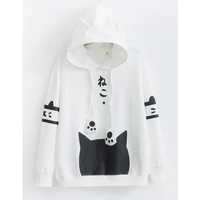 Women’s Casual Cat Print Hoodie – Long Sleeve, Loose Fit Pullover Sweatshirt