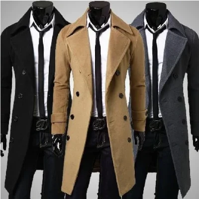 Men's Long Woolen Trench Coat Classic Long Sleeve Single Breasted Coat Jacket