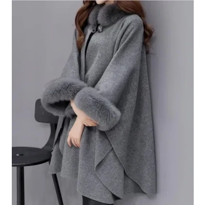 New Winter Womens Parka Casual Wool Coat Women Fur Coats Woman Clothes Cloak Shawl Poncho Jacket