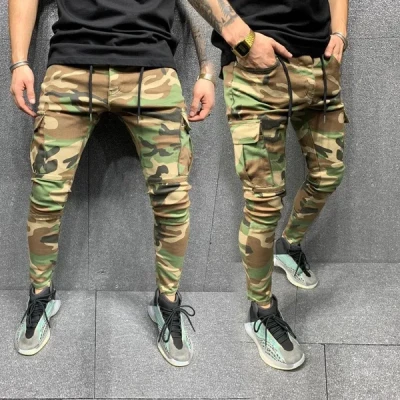 Fashion Men's Camo Fitness Jeans Plus Size Skinny Jeans Camoflage Cargo Pants Trousers for Men